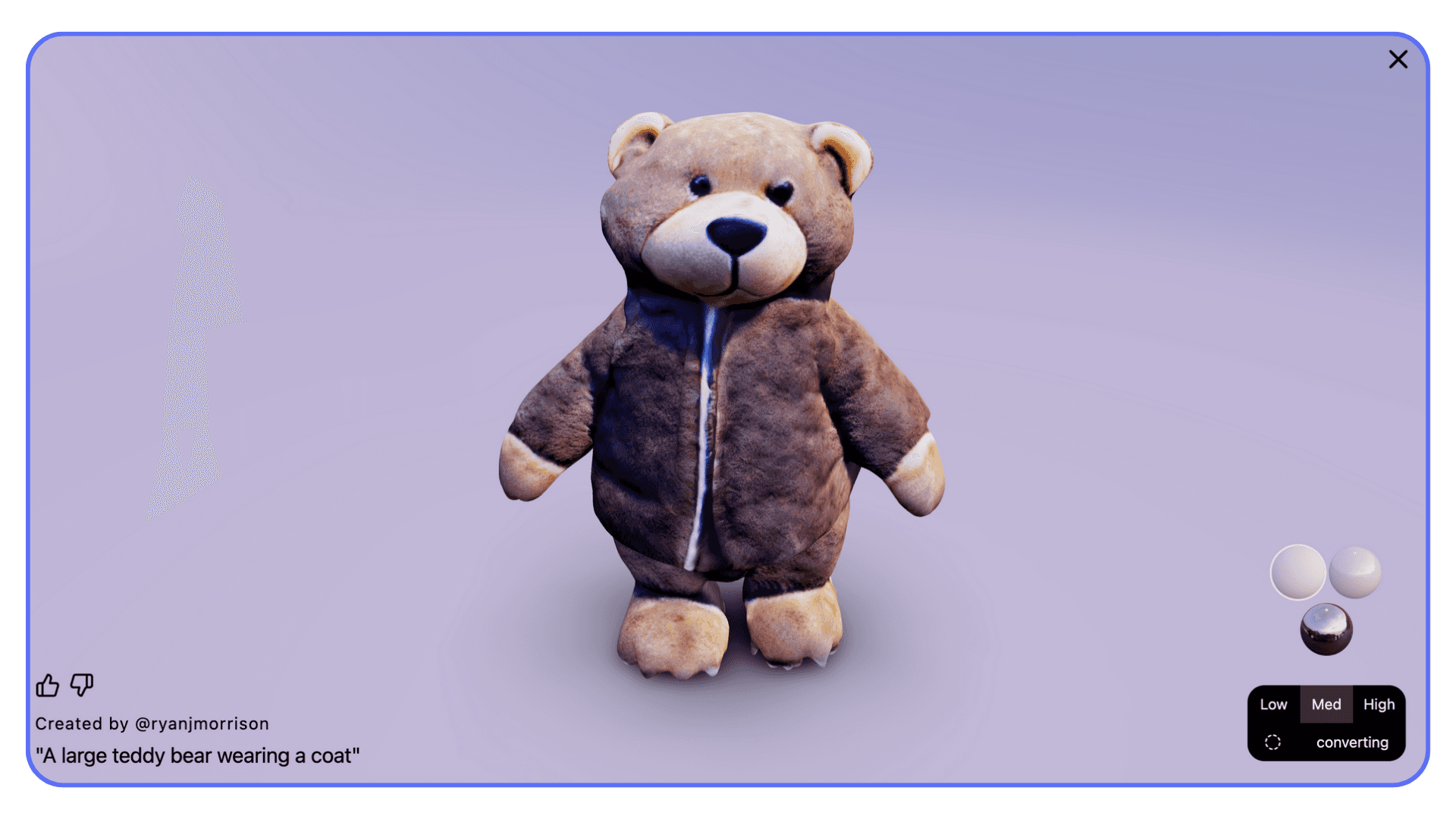 Meshy is popular because it usually gives you something usable without a fight. You type a prompt, wait a moment, and the result generally has a readable silhouette and sensible proportions. You’re not guessing what the object is supposed to be, which already puts it ahead of many text-to-3D tools.